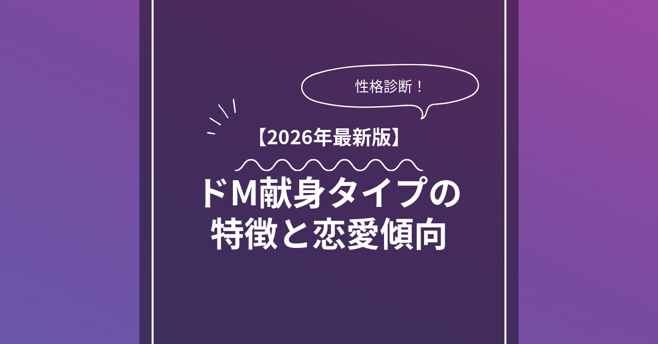 この記事では、BDSM 16役職診断の結果「ドM献身タイプ」のスタンス・特徴・恋愛傾向・相性を詳しく解説する。さらに、KinkyerをはじめとするSMマッチングアプリやSM特化のマッチングサービスでこのタイプが出会いを得るための具体的な方法も紹介する。SM・BDSMのマッチングにおいて自分の役職を正しく理解することが、良質な関係への最短ルートになる。