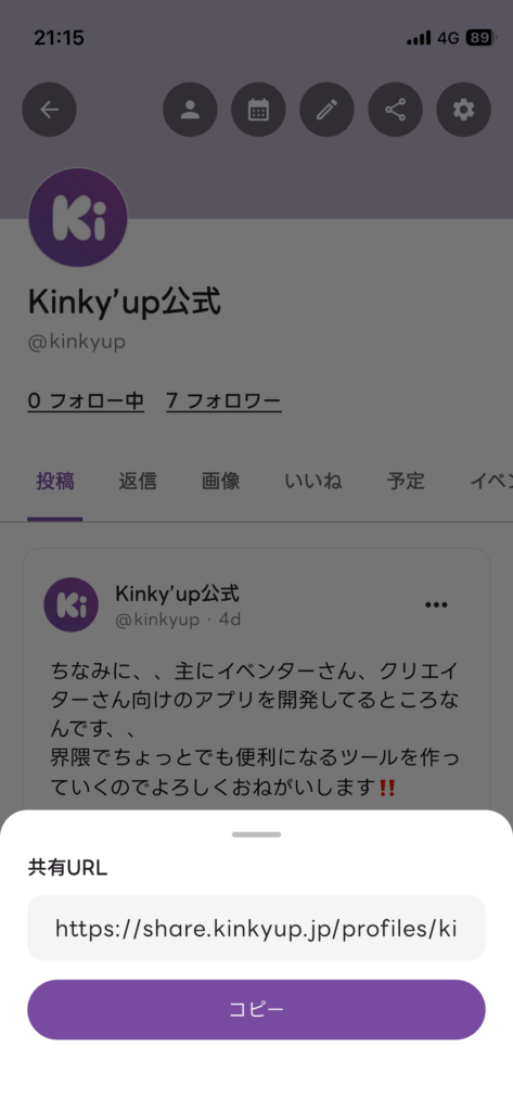 Kinky’upのプロフィールやイベント情報を外部に見せるための機能も追加しています。